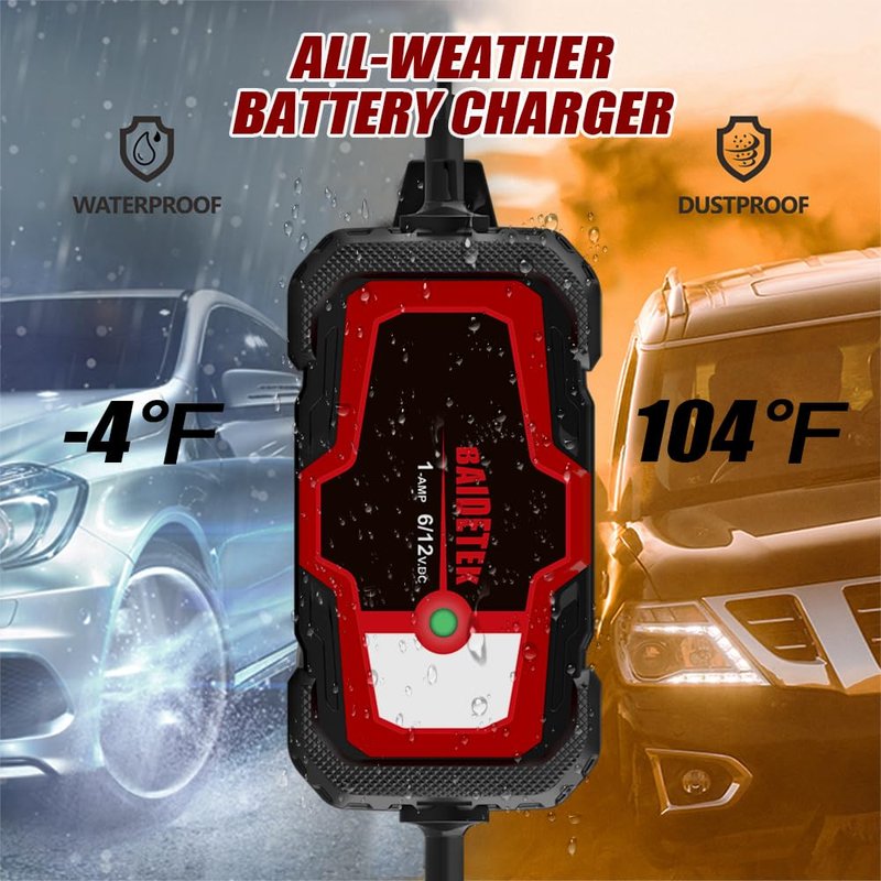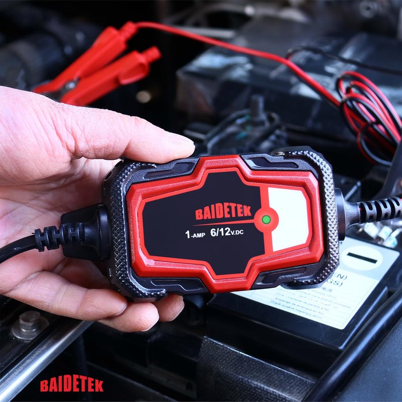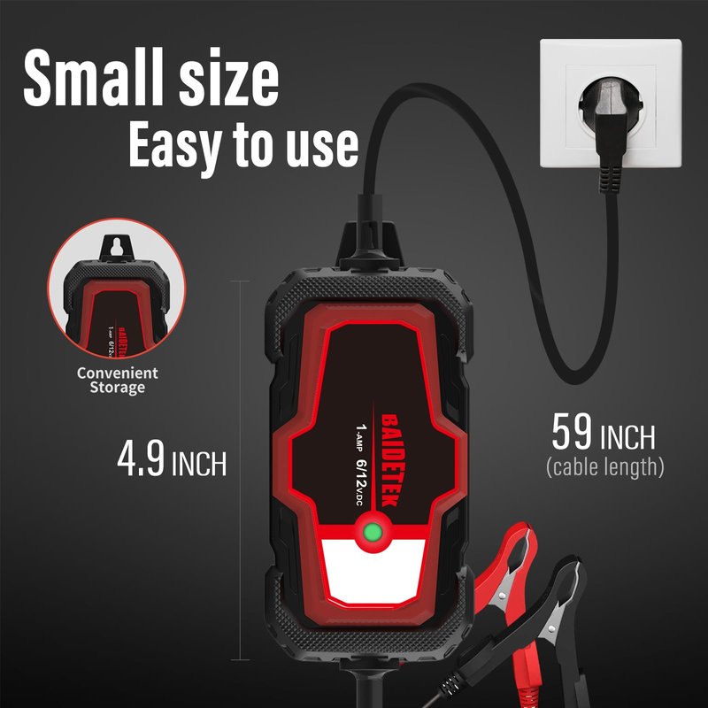 BAIDETEK 1A Car Battery Charger, 6V and 12V Fully Automatic Trickle Charger, Smart Battery Maintainer for Cars, Motorcycle, Boat, Truck, Lawn Mower, Marine Lead Acid Batteries