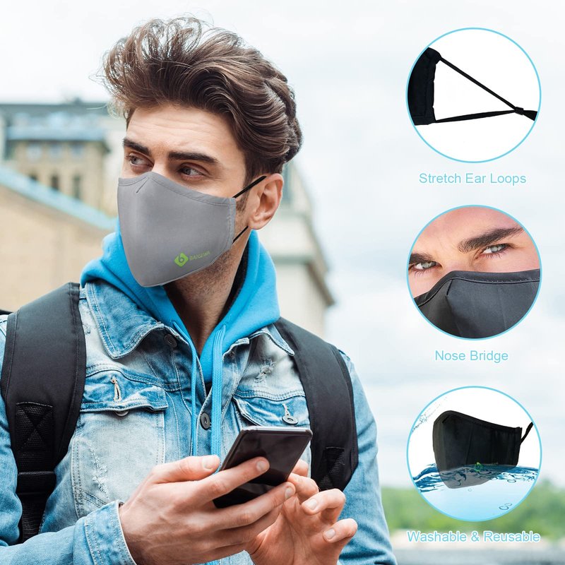 - [Stay Safe with BAIGEWA Cloth Face Mask] BAIGEWA washable face masks can cover the entire area of the mouth and nose, each mask also comes complete with 1 pcs PM2.5 carbon filters to provide you extra protection.
