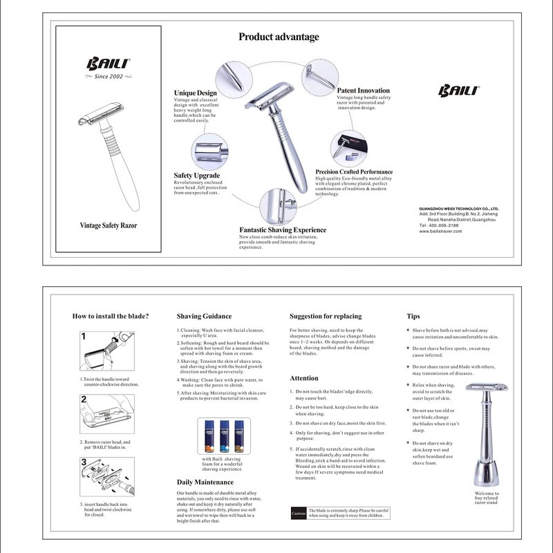 BAILI is professional in manufacturing of all kinds of shaving products (shaving razor, razor blade, shaving foam and so on).