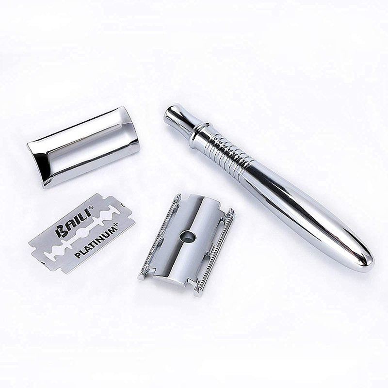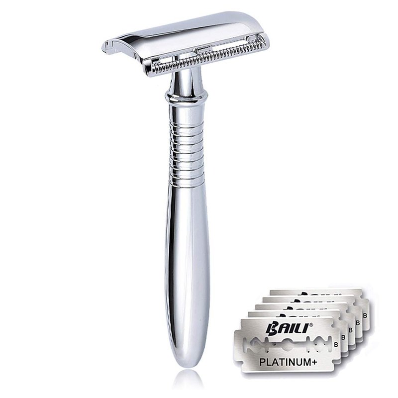 BAILI Classic 3-Piece Metal Double Edge Eco Safety Razor Long Handle Wet Shaving Kit for Men Women with 5 Platinum Blades BD191
