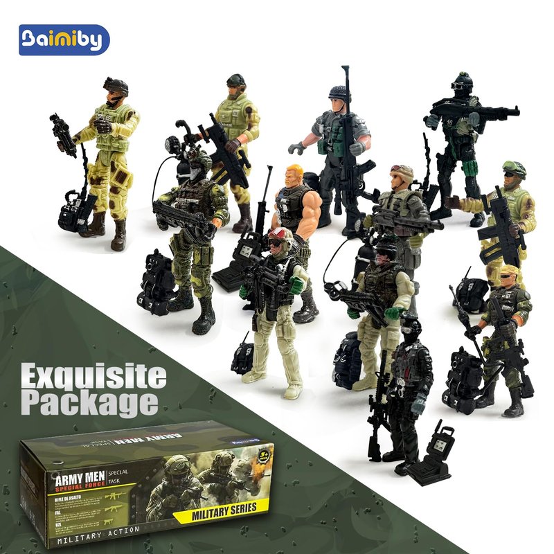 Baimiby Army Men Soldiers, 12 Pcs Soldiers Toy Special Force Action Figure with Weapons Military Soldier Playset Army Toy Set Birthday Gift for Toddler Boy 3+