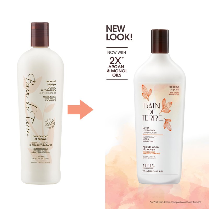 Bain de Terre Coconut Papaya Ultra Hydrating Conditioner, Moisture Quench for Dry, Damaged Hair, with Argan & Monoi Oils, Paraben-Free, Color-Safe, Vegan, 13.5 Fl Oz