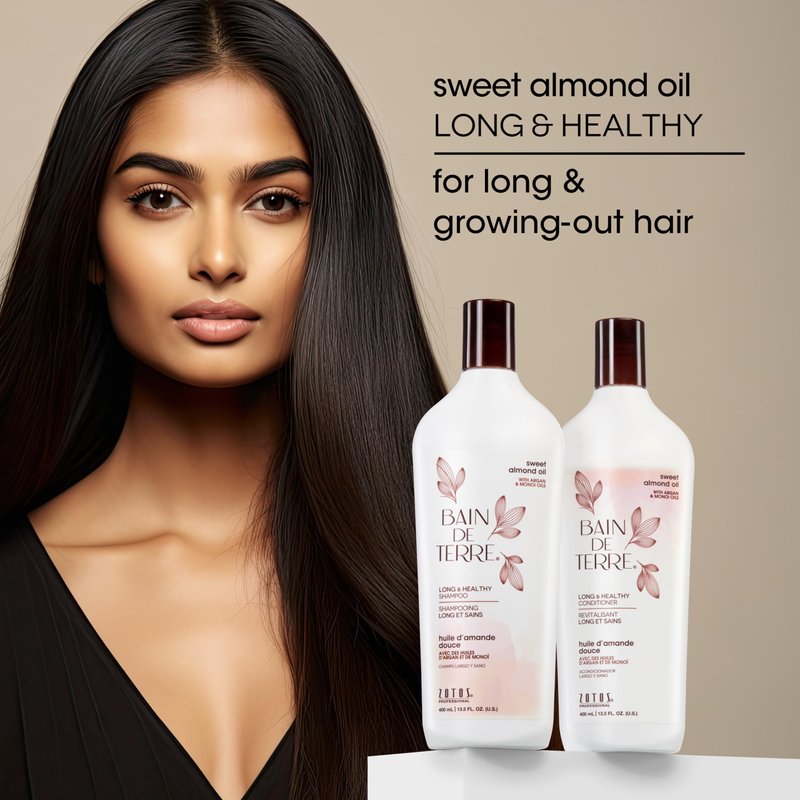 Bain de Terre Sweet Almond Oil Long & Healthy Conditioner, Strength & Protection for Weak, Damaged Hair, with Argan & Monoi Oils, Paraben-Free, Color-Safe, Vegan, 13.5 Fl Oz