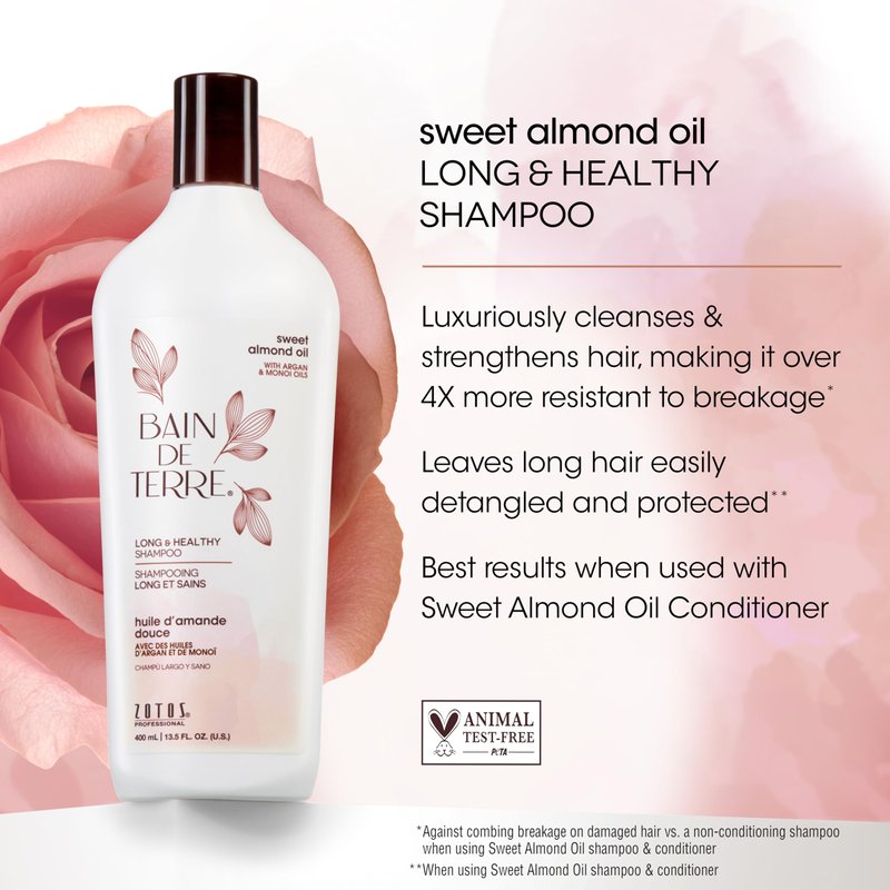 Bain de Terre Sweet Almond Oil Long & Healthy Shampoo, Strength & Protection for Weak, Damaged Hair, with Argan & Monoi Oils, Paraben-Free, Color-Safe, Vegan, 13.5 Fl Oz