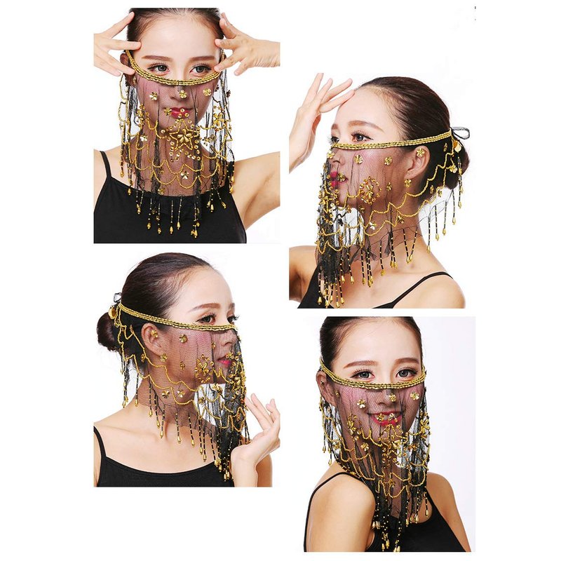 Baisdan Face Veils Belly Dance Costumes Mesh Face Veil with Beaded Halloween Costume Accessory (One Size, Black)