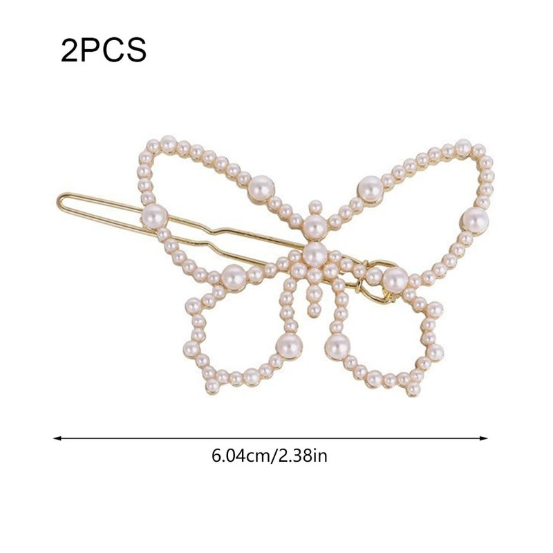 BAIWANLCH 2 Pcs Hair Clips Imitation Pearl Hair Barrettes Hollow Butterfly Hairpins for Women Girls Party Wedding Styling Decorations