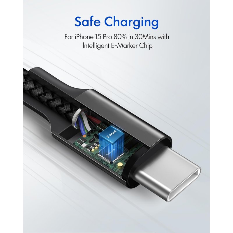 - Stable with Emark Chips: 100W Super Fast Charging USB C Cable with built-in E-MARK chip provides up to 100W of fast charging power and Type C Charging Cable prevents overcharging and overheating to maximize your device life