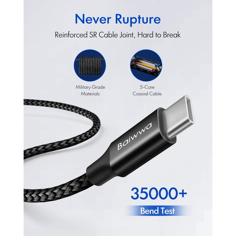 - Tough & Never Rupture: USB C Nylon Cable combines length, durability, and fast charging capabilities. Nylon braided design for USB C to C Cable withstand 30,000+ bends in a laboratory environment and 6ft USBC to USBC Cable allows flexible use and tangle-free