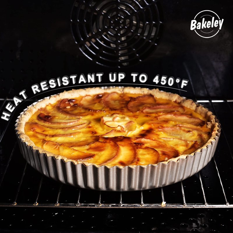 - 【Fit HOT & COLD】Bakeley tart pan is suitable for both the refrigerator and the oven. Minimum temperature -104˚ F(-20˚C), maximum temperature 450˚ F (˚232C), heated by evenly frozen. Non-corrosive, stain-resistant and Dishwasher available for easy maintenance, but we still recommend hand wash to extended performance.