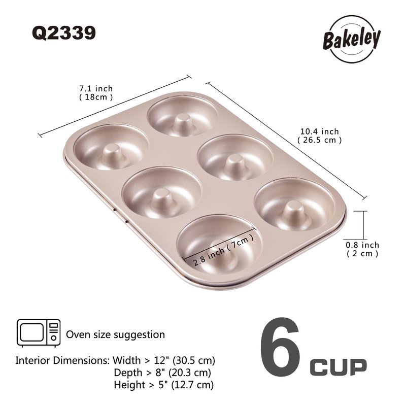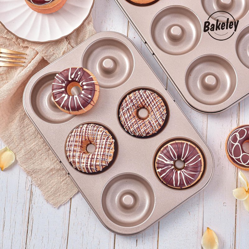 Bakeley Donut Pan, Nonstick 6 Cavity Ring Doughnut Pan for Baking, Set of 2 (Champagne Gold)