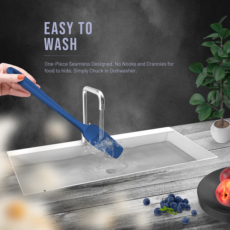 - EASY CLEAN SEAMLESS DESIGN: Each baking spatulas has a stainless-steel core, so it’s remarkably durable, non-slippery with a comfortable grip. It has a seamless silicone design which is a major plus as there aren't any cracks or ridges to catch food or harbor anything that makes it super easy to clean and use. It doesn't retain odors or colors. After completing your cooking task, simply chuck cooking spatulas in dishwasher to give it a deep clean and then hang them from the punched holes.