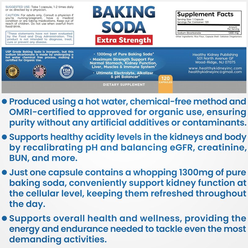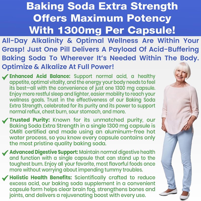 - 1300MG ALUMINUM FREE ORGANIC USE: Baking Soda Extra Strength is confirmed for organic use, ensuring it meets the highest standards of purity. This supplement is free from aluminum and other unwanted chemicals, making it an ideal choice for those seeking a natural solution.