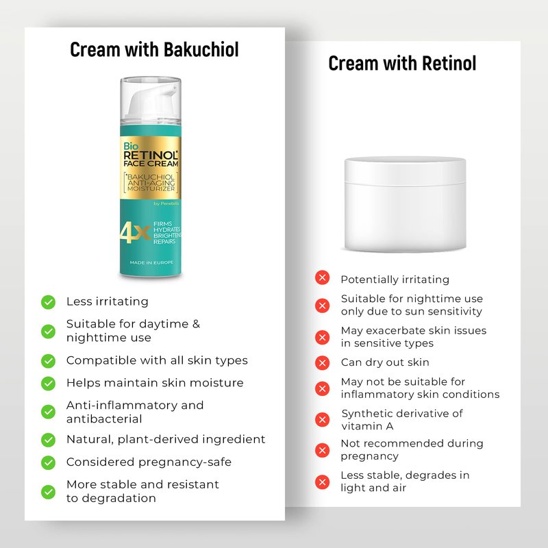 - Bakuchiol - Retinol Alternative: Our facial moisturizer includes innovative plant-based bakuchiol for endless anti-aging possibilities. Suitable for all skin types and safe for sensitive skin.