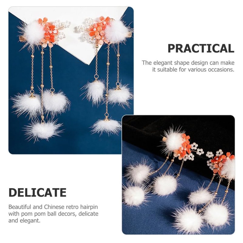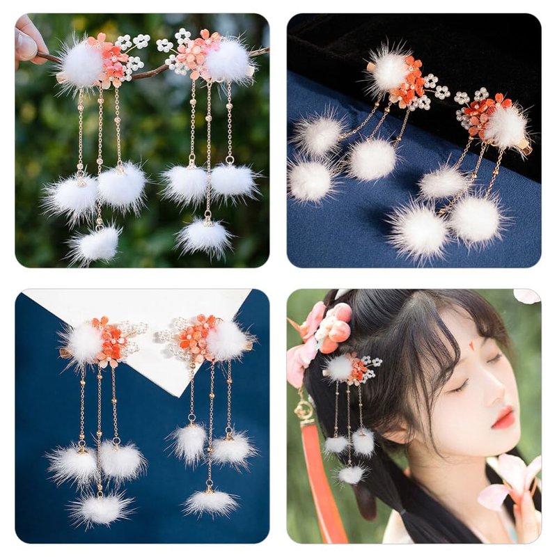- 💖【Fun Furry Ball Hair Clips】Add some novelty to your Han-style clothing with these furry ball hair clips. They're easy to use and can help you create a delicate hairstyle that's sure to turn heads.