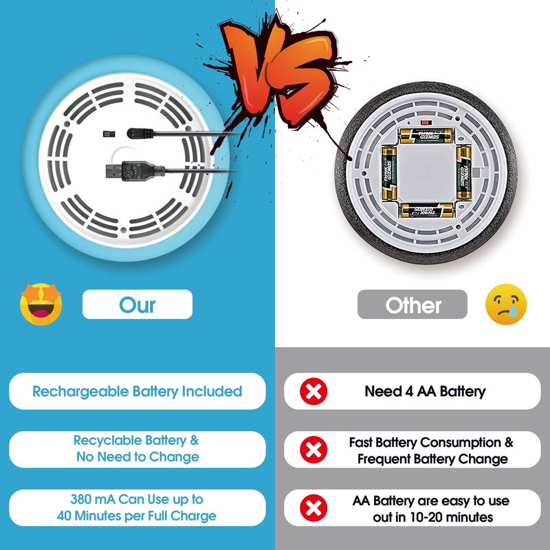 - 【Easy to Use for Kids】 Simply turn on the powerful and quiet air fan, then put it on a smooth surface and give it a little kick, it would slide far away. A rechargeable battery can be conveniently charged by USB.