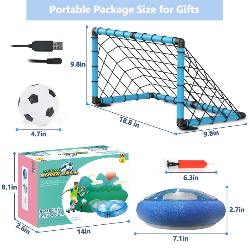 【Rechargeable Hover Soccer Ball 】Updated rechargeable hover soccer ball can make itself float on the ground. With air power function, you can turn any floor into an air soccer surface, perfectly at home on wood, linoleum, polished concrete.