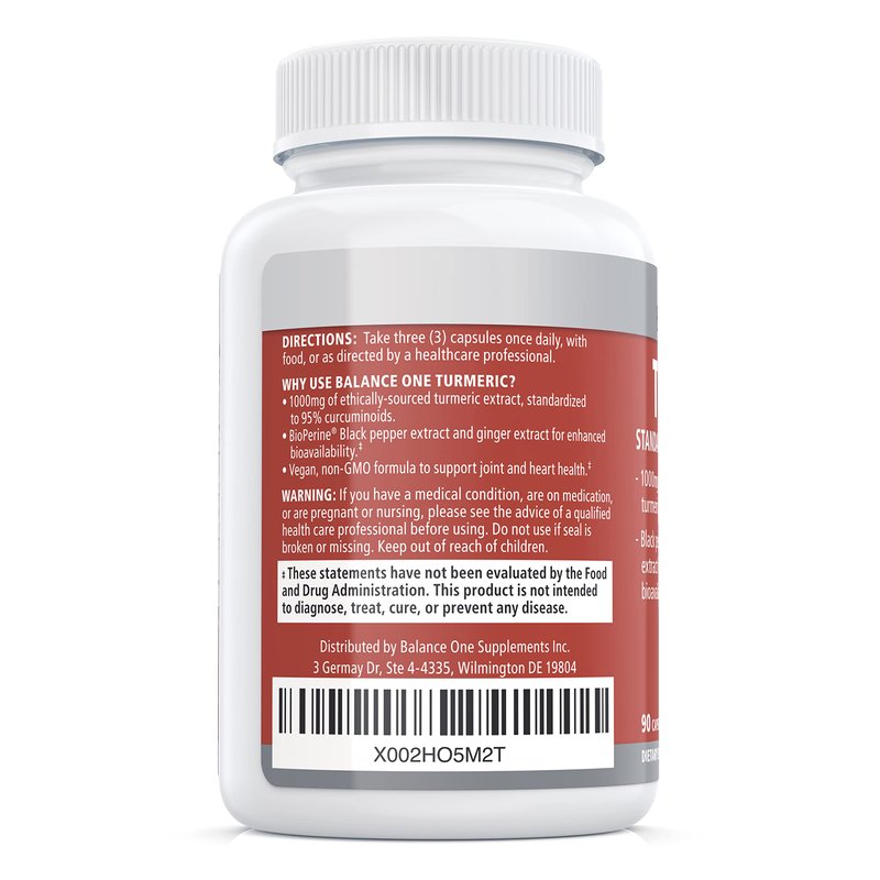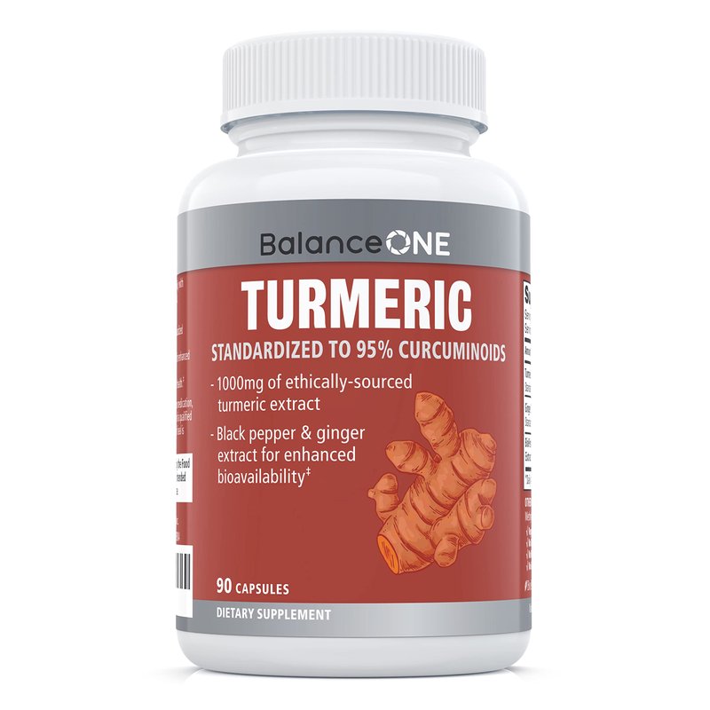 Balance ONE Turmeric Extract 1000mg Ethically Sourced Turmeric Curcumin, Standardized to 95% Curcuminoids - Ginger Extract and BioPerine - Vegan, Non-GMO - 30 Day Supply