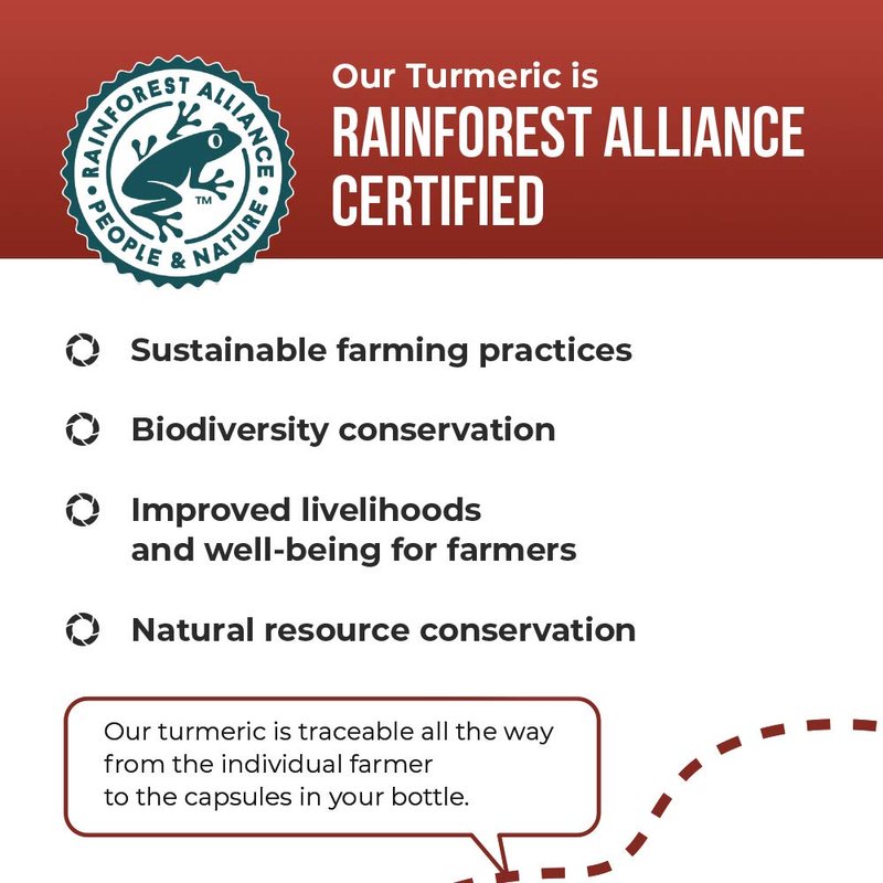 - ETHICALLY SOURCED TURMERIC EXTRACT. Our turmeric suppliers use farming practices that meet the highest levels of sustainability, and meet or exceed fair labor practices. Our tumeric is traceable all the way from the individual farmer to the capsules in your bottle.