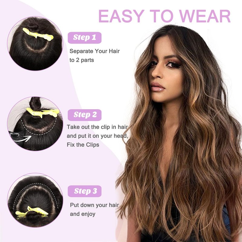 - 【Convenient To Use】Can Apply 3/4 Full Head Easier Just With 1 Pcs, Easy To Use By Yourself Without Help, Adding Length And Volume In Seconds.Compared To Traditional Hair Extensions, 5Pcs Clip In Hair Extensions Can Provide You With More Volume With No Glue, No Tape, Causing No Damage To Your Hair And Scalp. You Don'T Need To Rush To The Salon For A Party, Or Be Upset In An Overslept Morning; Just Spend 5 Minutes Wearing These Hair Pieces, Then A Charming And Elegant Look Will Appear.