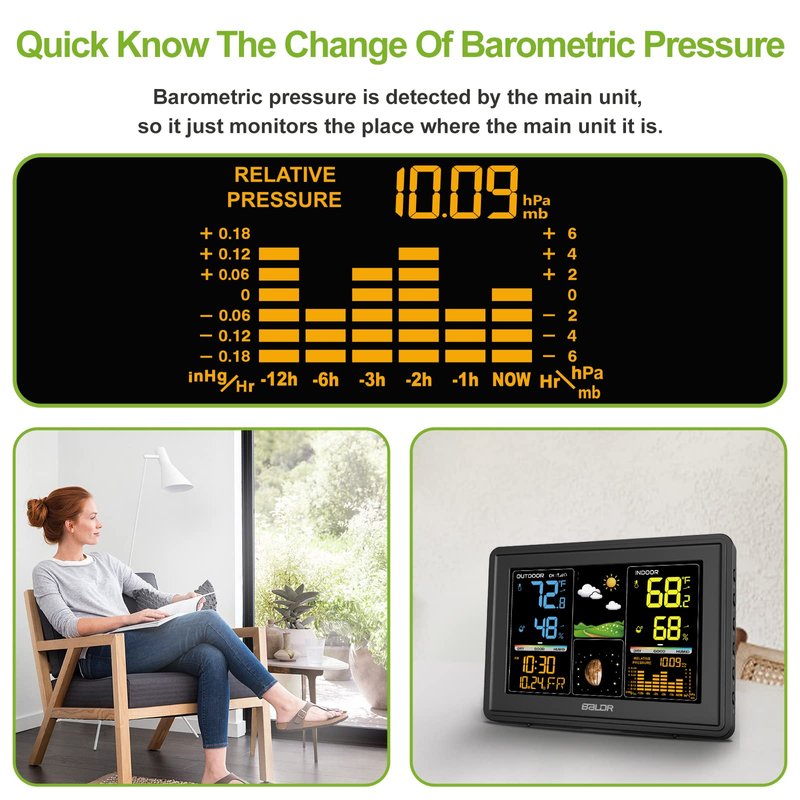 BALDR Weather Station Indoor Outdoor Thermometer Digital Color LCD Moon Phase Barometric Pressure Temperature Humidity Monitor