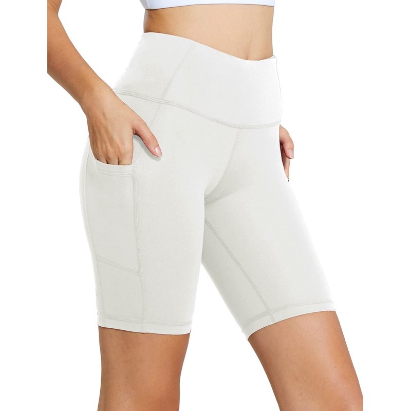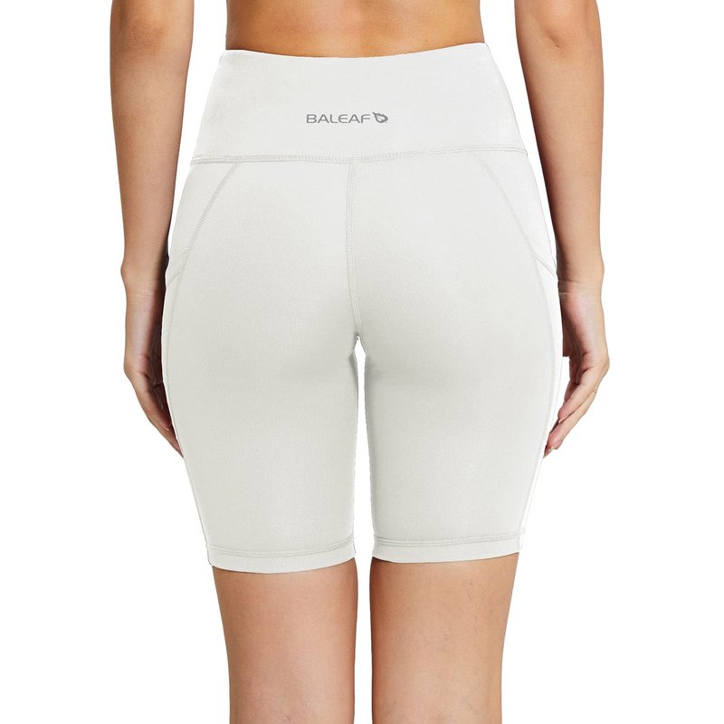 BALEAF Biker Shorts Women Yoga Gym Workout Spandex Running Volleyball Tummy Control Compression Shorts with Pockets 8" White S