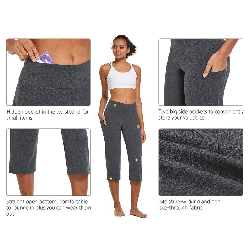 - High waist capris & Straight leg open bottom, Comfort fit and Sleek fit for unrestricted freedom of motion. Perfect for yoga, pilates, workout, running, jogging, walking, GYM fitness, any type of exercise, or lounging at home