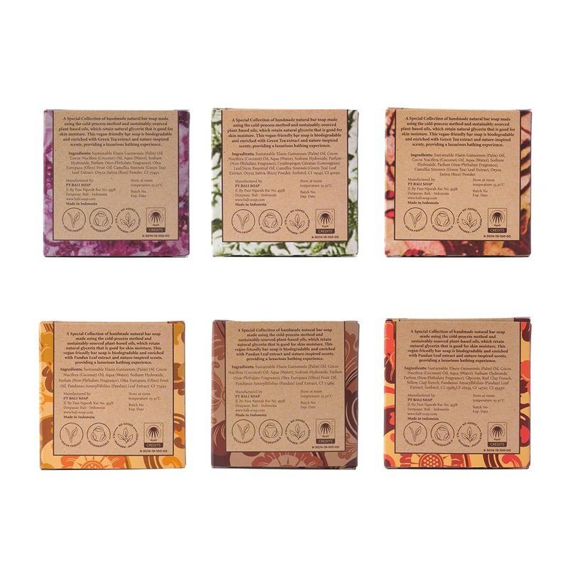 Bali Soap - Batik Gift Set - 6 pc Variety Pack - Handmade Moisturizing Natural Glycerin Soap Bar - Tropical Flowers & Spices Scents, for Face & Body, Vegan and Biodegradable, 3.5 Oz each