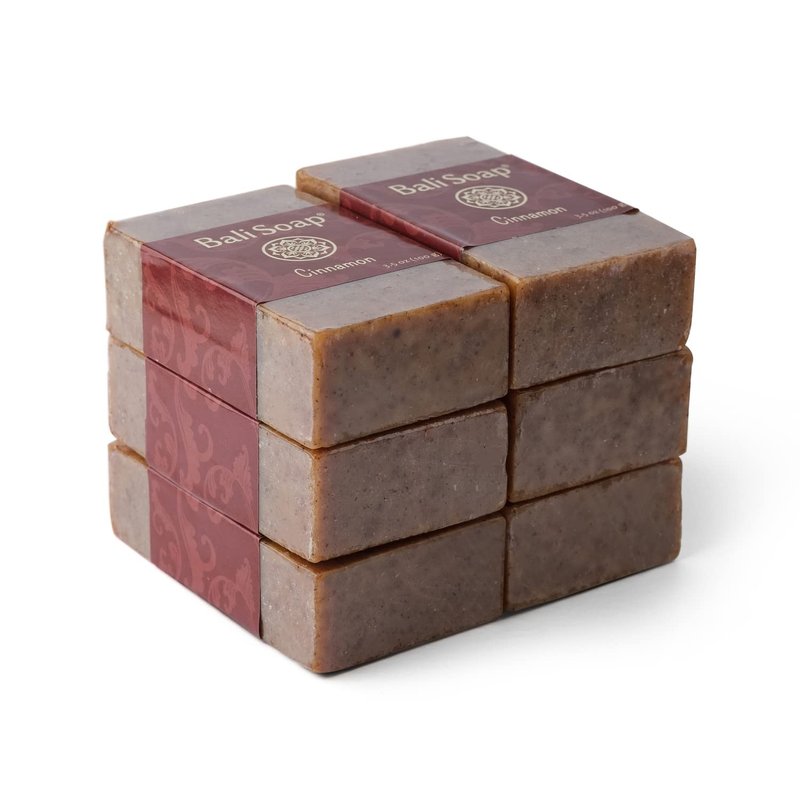 - BALI SOAP: Naturally exotic soap from Bali! Crafted in a cold process method using plant-based ingredients and textured with botanicals from the Indonesian archipelago. Bali Soap natural glycerin bars gently exfoliate and moisturize the skin with ultra-nourishing lather, rinsing off clean without residue and leaving only the warm, enticing scent of cinnamon.