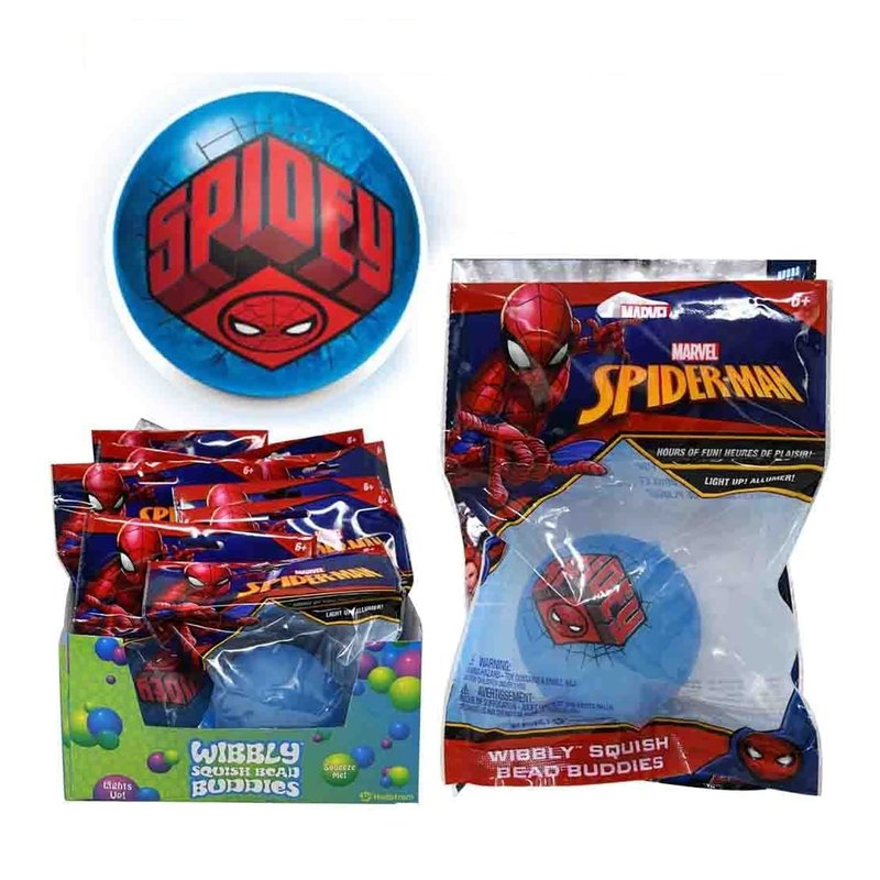 - INCLUDED IN THE PURCHASE OF SPIDER-MAN MESH BALLS BUNDLE PACK - Includes 1 Marvel Spider-Man Blue Wibbly Squish Bead Balls with LED light packaged individually. Each Spider-Man mesh squishy ball features full-color graphics of a cool geometric Spidey logo. The fidget ball squishy toys are filled with wibbly squishy beads that offer a cool textured sensation, and LED lights that activate when you squeeze or shake the stress ball fidget toy.