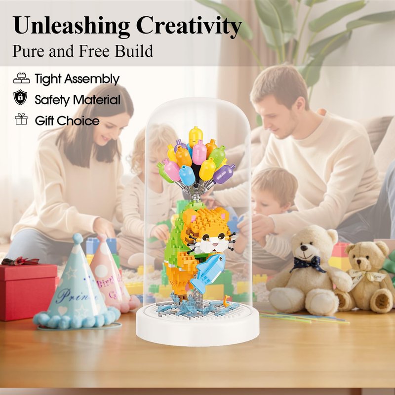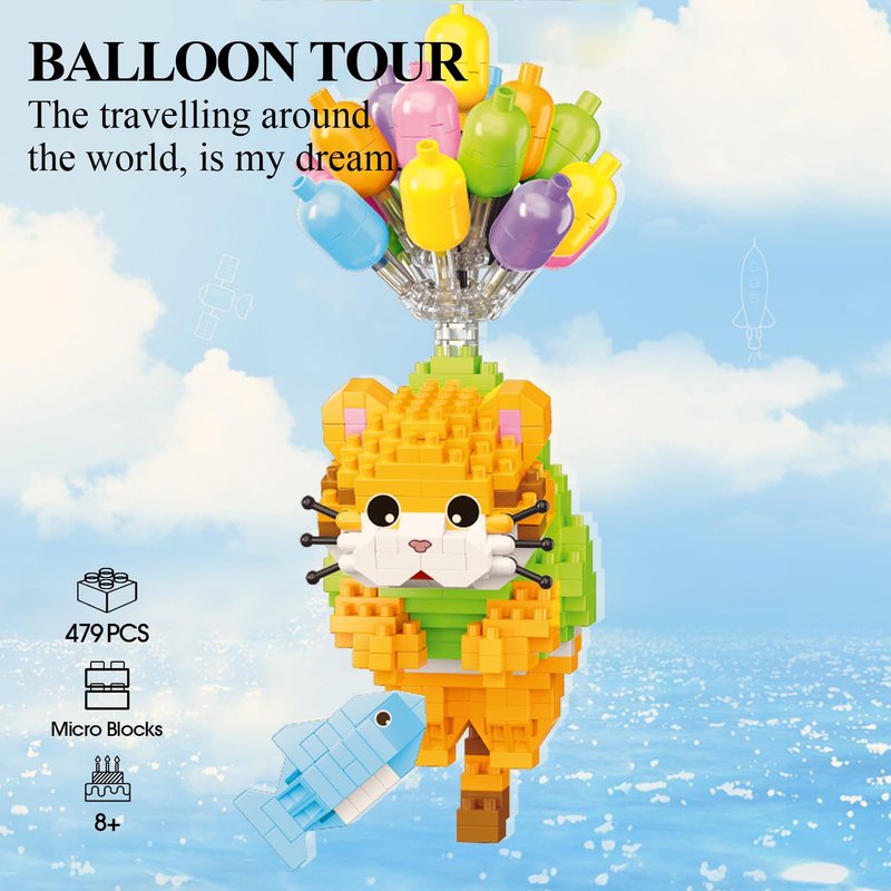 - 【Unique Design】Embark on a whimsical journey with BALLOON TOUR Collection, featuring a naive orange cat hugging its newly caught big fish tightly, its tail hanging down in the sea. The hot air balloon slowly ascends with the cute cat, the waves are rolling under its feet, and the fish is jumping. This cat building block set masterfully captures the moment and also comes with a dust cover, making the mini animal set the perfect addition to any collection.