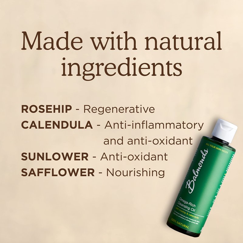 - VEGETARIAN & CRUELTY FREE: Be mindful of the world around you, even when finding your perfect skin care solutions! Balmonds Omega-Rich Cleansing Oil is vegan, cruelty free, fragrance free and nut free, to make our dream skin care solutions available to as many people as possible. Our nourishing face and body cleanser is a perfect alternative to synthetic, foaming or perfumed cleansers that can cause irritation on sensitive skin.