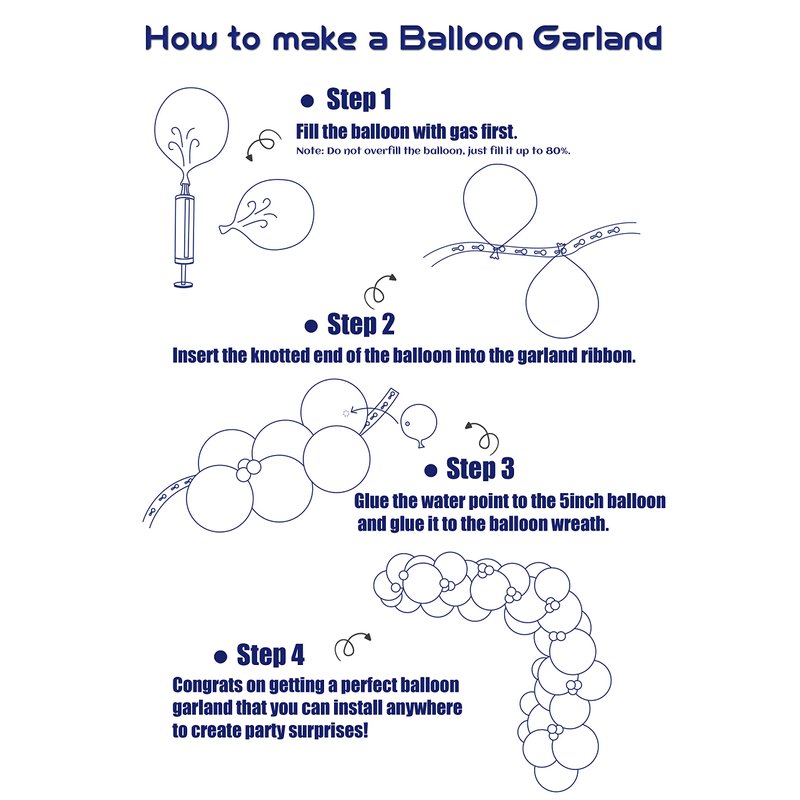 - NOTICE: In order to save cots. You can air them up. Then put one or more balloon in one hole of the plastic chain. Controlling the size of each balloon to form a excellent balloon garland. Hang them on anywhere. You can cut balloon chain to achieve your satisfaction forming any shape to match your themed party. Perfect for Birthday Party Bridal Baby Shower Engagement
