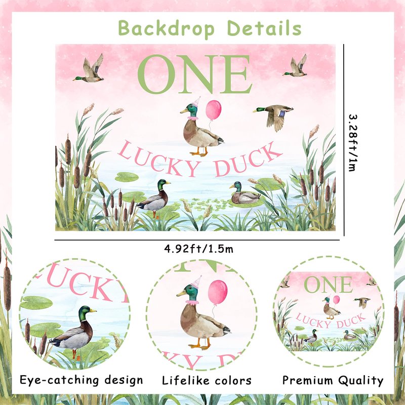 - Suitable size: Our one lucky duck birthday backdrop measures 3.28*4.92ft which is enough to help you throw an unforgettable party. It is a great photography background.