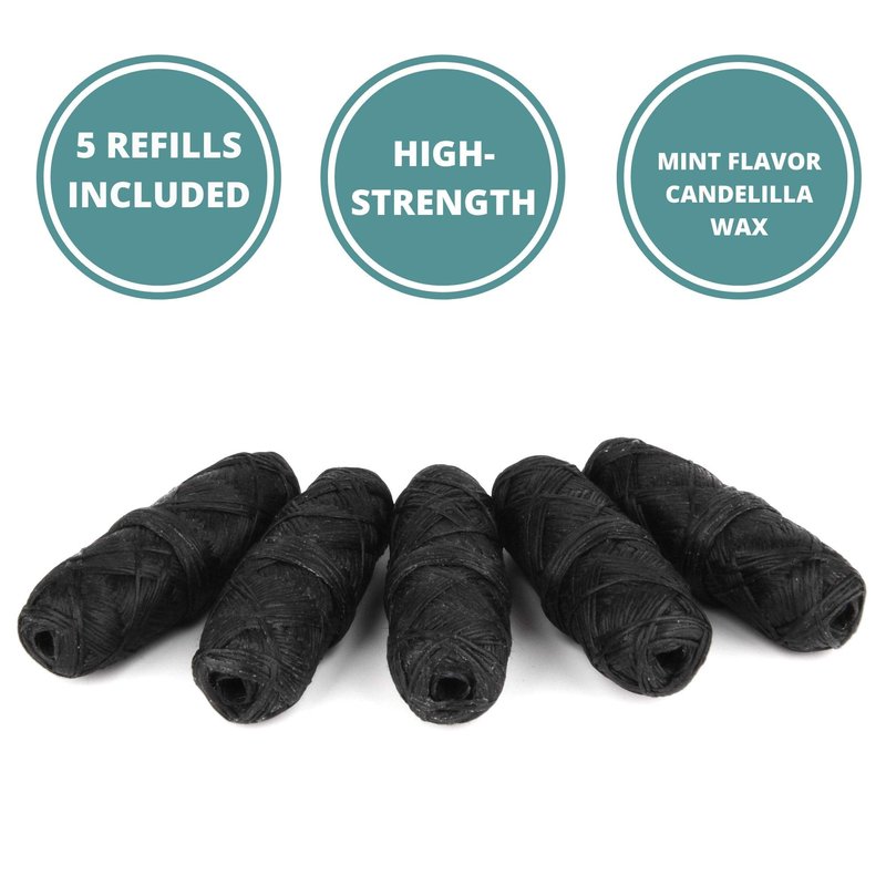 Bamboo Charcoal Dental Floss Refills, Bambo Woven Fibres, 5 x 33 Yards, Organic Refillable Dental Floss, Natural Floss, Eco-Friendly Floss. Plant-Based Candelilla Wax Floss with Natural Mint Flavoring