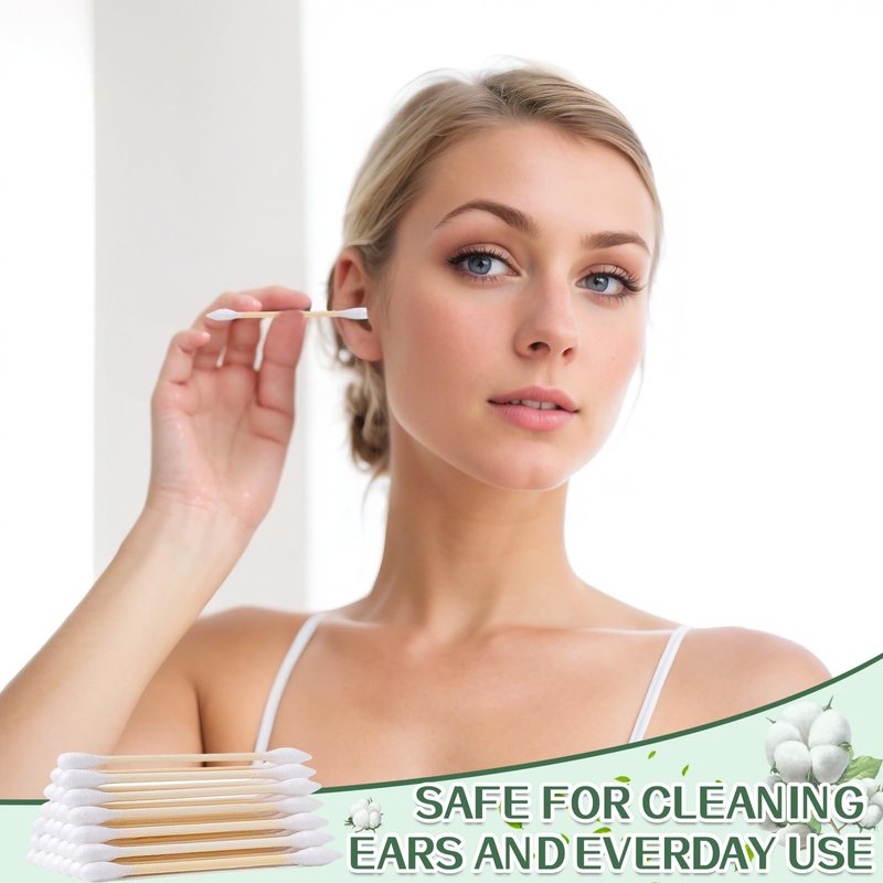 Bamboo Cotton Swabs 1000 Count, Organic Cotton Swabs with Wooden Sticks, Double Tipped Cotton Buds for Ears, Makeup, Daily Cleaning