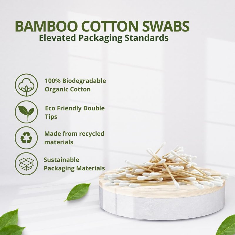 Bamboo Cotton Swabs -550 Count- Cotton Swabs for ears, Front Window for easy access,100% Eco-Friendly Cotton buds & Recyclable Packaging. Ideal for Makeup, Beauty, Arts & Crafts.