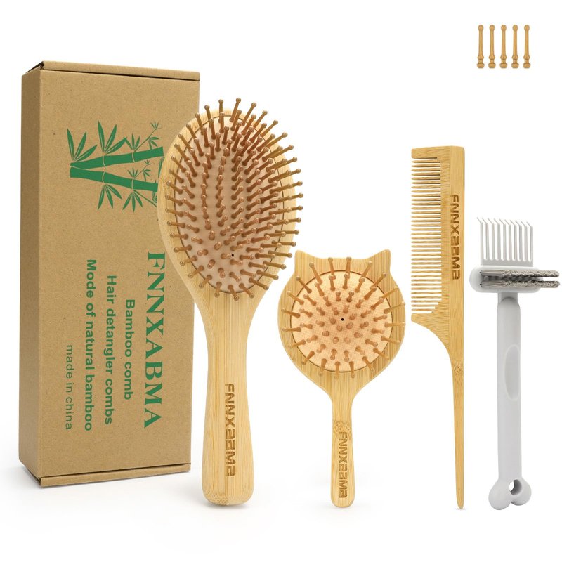 - 【Eco-Friendly and Sustainable】Our bamboo brush is made from 100% natural bamboo, ensuring no static and plastic pollution. Bamboo is a naturally sustainable material, making this hairbrush set an eco-friendly choice for your hair care routine.