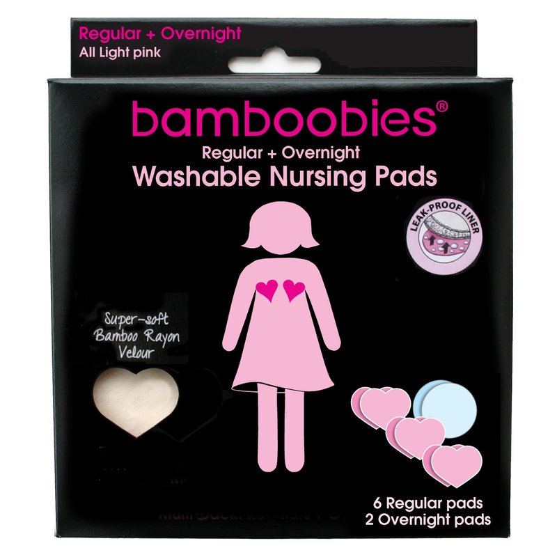 Bamboobies Women’s Nursing Pads, Reusable and Washable, Blue and Light Pink, 3 Regular Pairs and 1 Overnight Pairs, Leak-Proof Pads for Breastfeeding, 4 Pairs