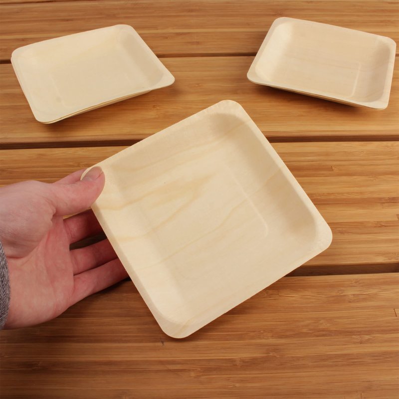 - These Square Wood Plates/Dishes come in 25 pcs, each one measures 5.5 inches in Length and width, and 0.78