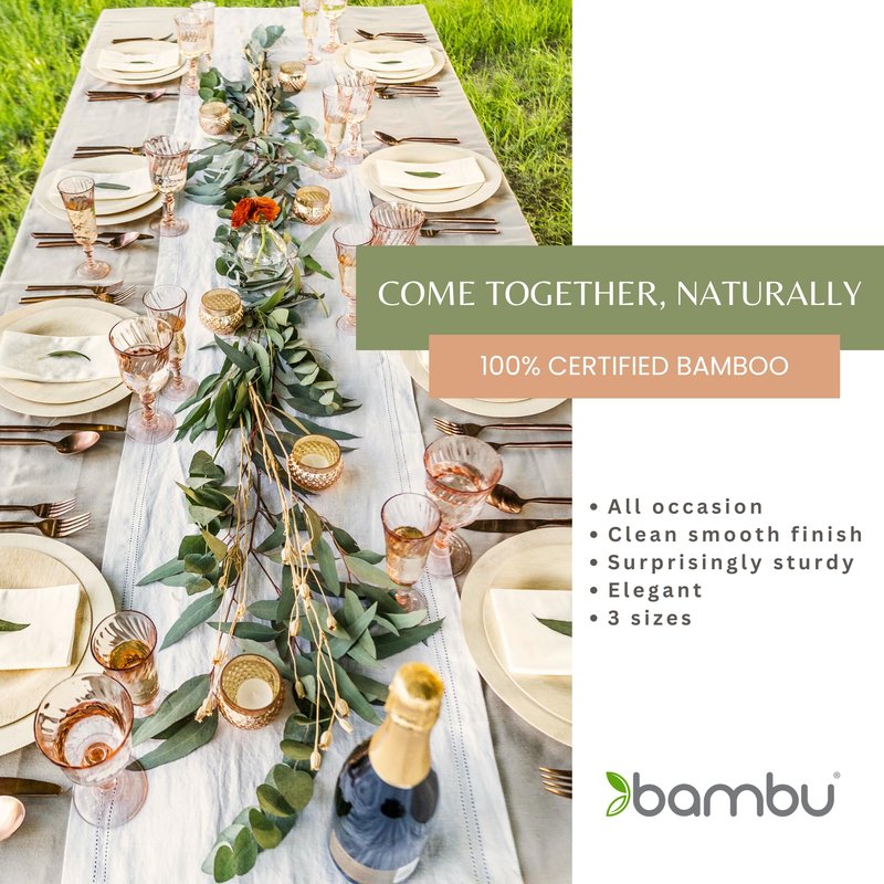 - Premium Quality - these bamboo plates are engineered to be lightweight, with a strength that will hold up to any food. Customers find our single use dinnerware to be heavy duty enough to use more than once. Bambu is the preferred premium disposable dinnerware