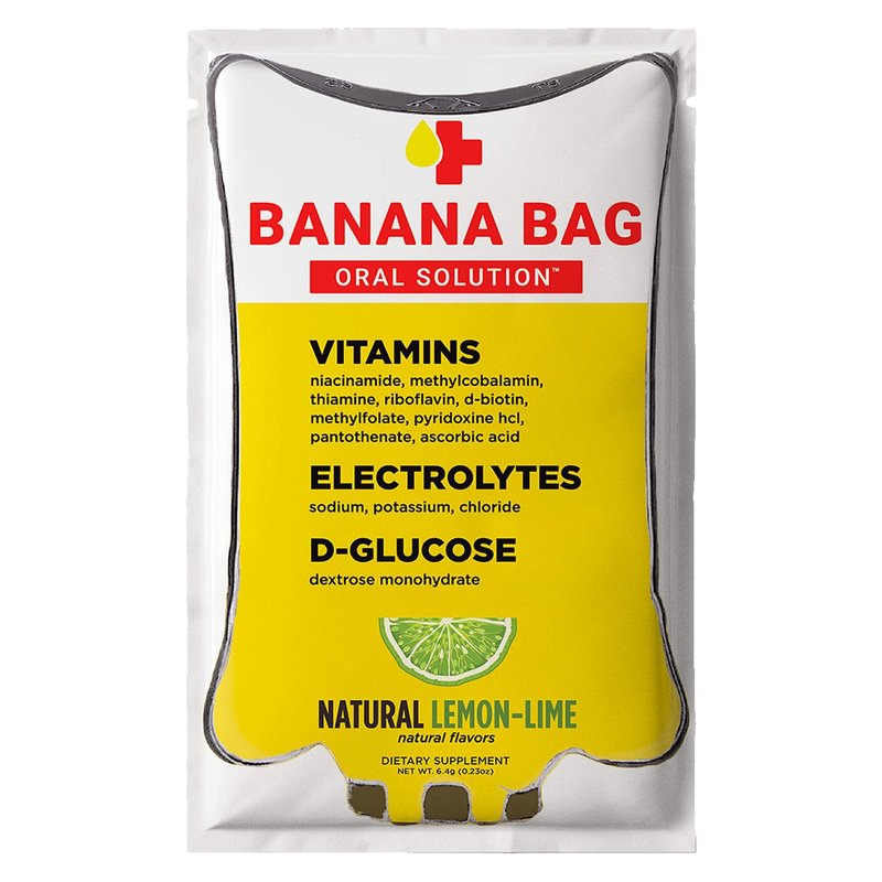 Banana Bag Oral Solution - Pharmacist Hydration Recovery Formula - Electrolyte & Vitamin Powder Packet Drink Mix - Natural Lemon Lime - 30 Pack Pouch