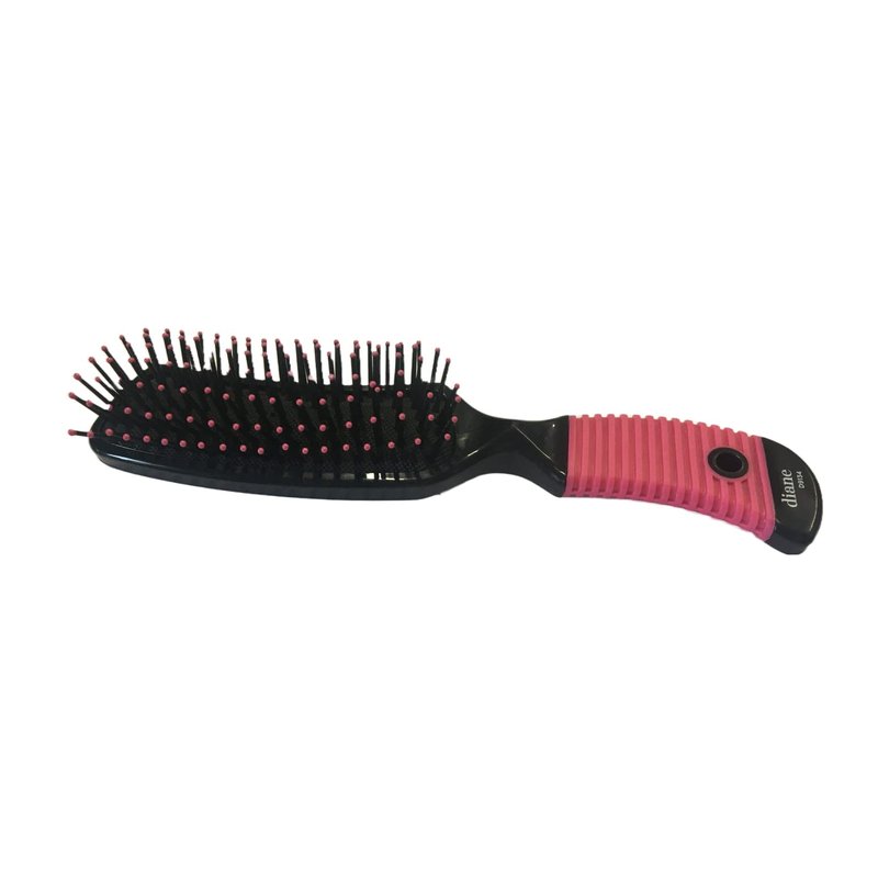 Banana Shape Hair Brush With 7 Rows Bristles In Cushion Base * PINK rubber grip handle and Ball tips