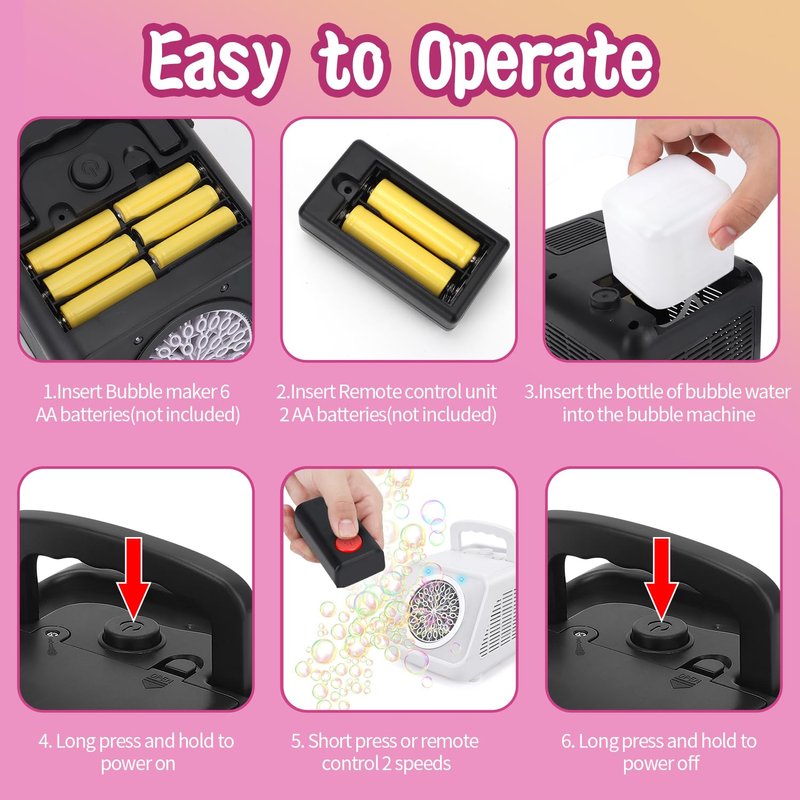 - Beautiful gift: This bubble machine is suitable for birthdays, parties, weddings, outdoor activities and a series of events. Also suitable for giving gifts such as Halloween, Thanksgiving, Christmas and so on.