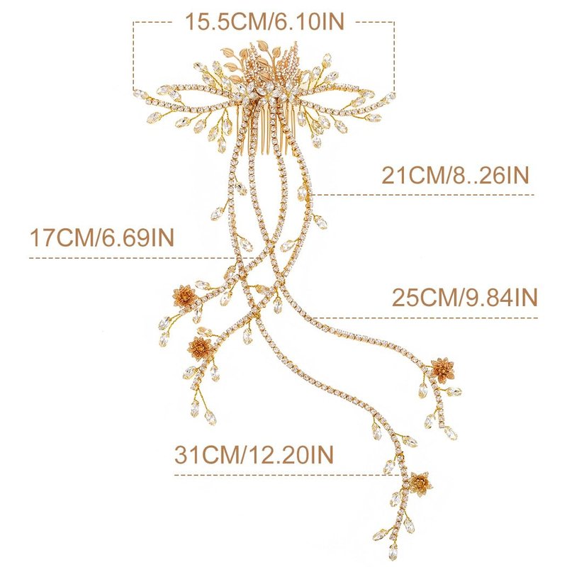 - Gold bridal hair piece is suitable for any hairstyle and it is adjustable.Free size for women and girls.