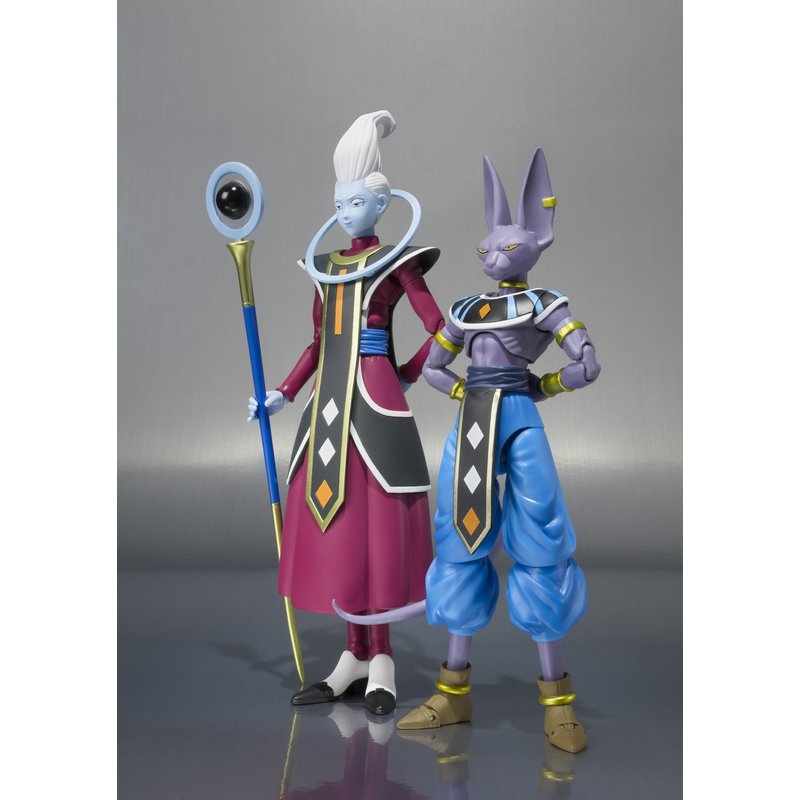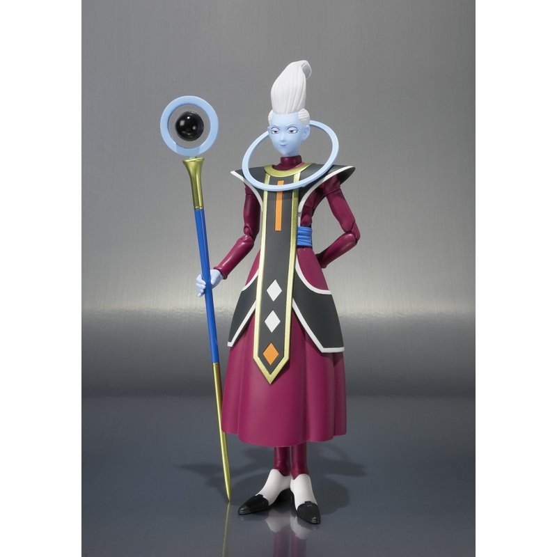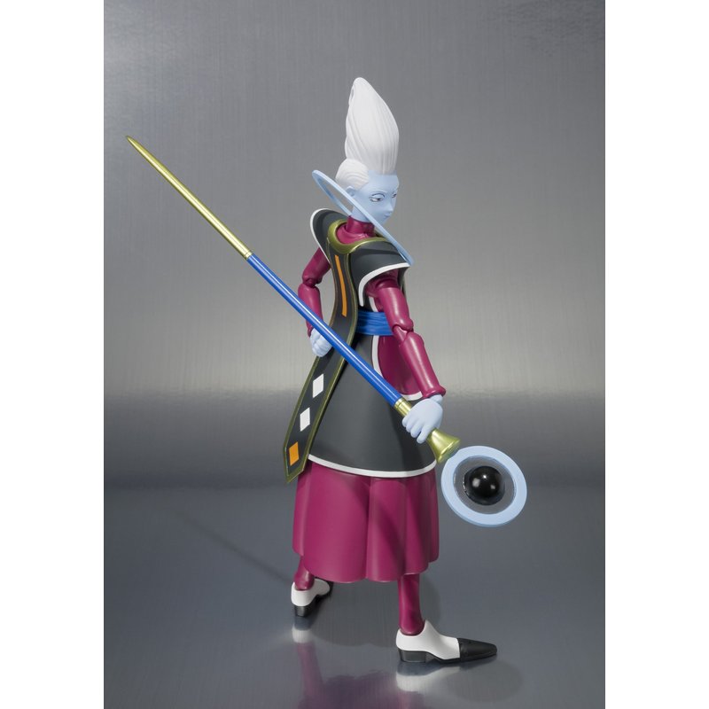 - Clear parts are used in Whis' scepter to give the illusion of the floating orb from the anime and Whis even comes with an interchangeable hand holding a spoon