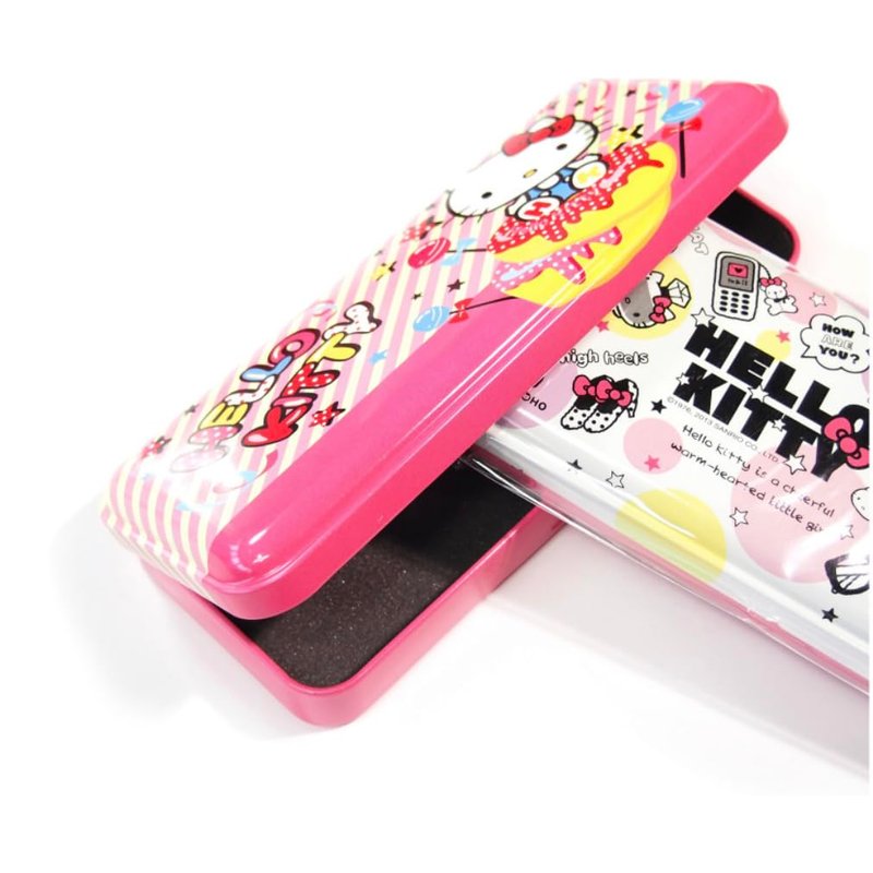 Bandal & Neoul Hello Kitty's Favorite Things Metal Tin Pencil Case for All Ages (Donuts in stripes)