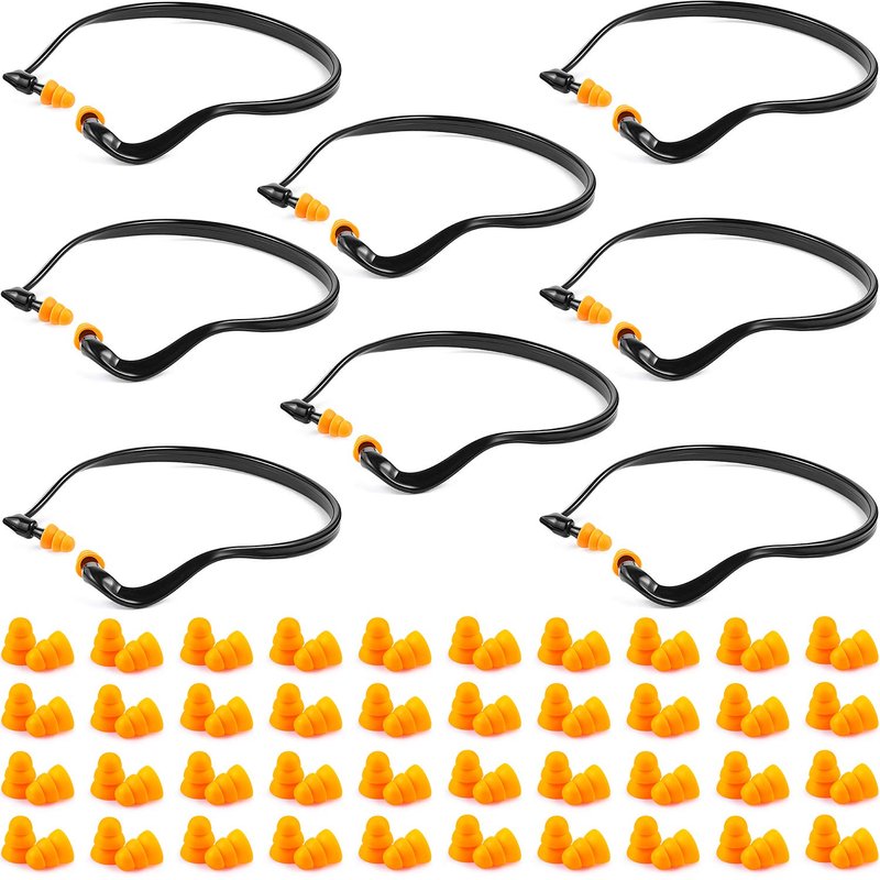 8 Pairs banded ear plugs hearing bands silicone band earplugs and 40 pairs replacement ear buds shooting ear plugs for noise, sleeping, swimming, studying and construction