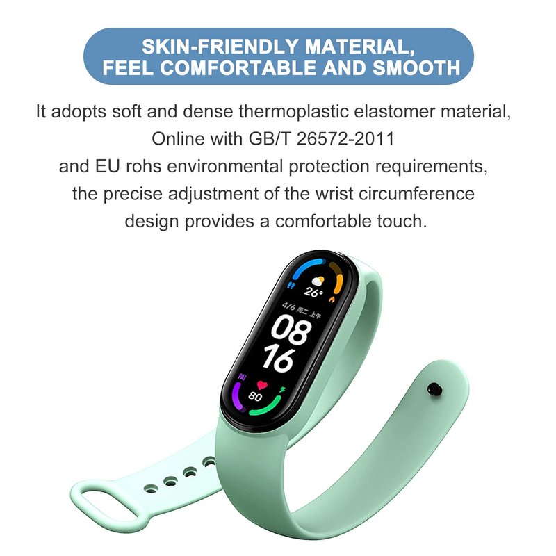 - SAFE AND COMFORTABLE - For Xiaomi Mi Band 7 / Xiaomi Mi Band 6 / Xiaomi Mi Band 5 / Amazfit Band 5 watch straps , It adopts soft and dense thermoplastic elastomer material, Online with GB/T 26572-2011 and EU RoHS environmental protection requirements, makes you feels soft like silk. It is very soft, lightweight and breathable, comfortable to wear, which won't irritate your skin.