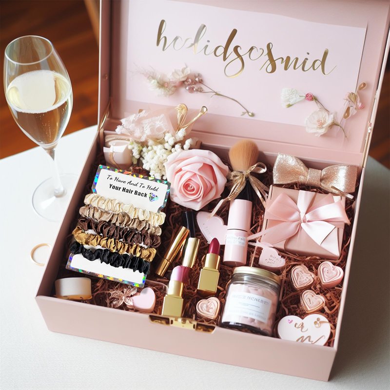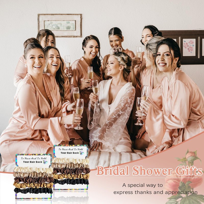 - đ°ăPerfect Addition to Bridesmaid Proposal BoxăEach set (five hair scrunchies) comes in a stylish personalized card that says, 'To have and to hold your hair back, 'making it easy to present the scrunchies as bridesmaid gifts or bachelorette party favors. It's a thoughtful and elegant way to show your appreciation