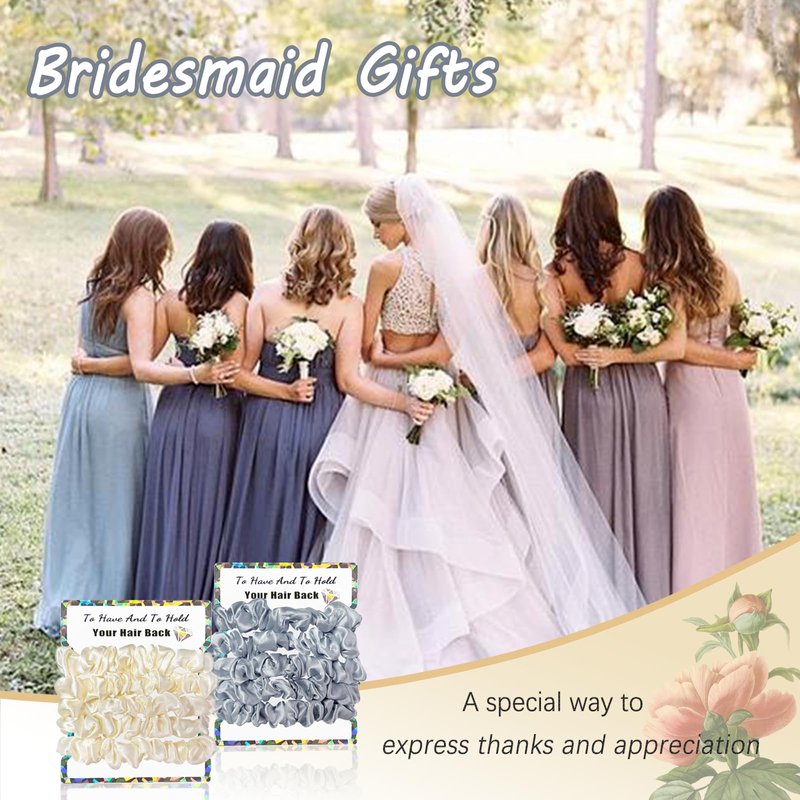- đăSoft Hair TiesăCrafted from 100% silk satin. The bridesmaid scrunchies are made of premium, shiny, and soft silk satin fabric, ensuring minimal hair pulling and comfort, preventing breakage and creases. Your bridesmaid will love them